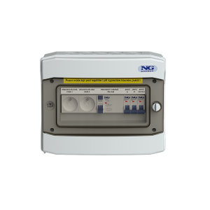 Jednotlivé okruhy jsou jištěny instalačními jističi s charakteristikou B (16 A). Rozváděč disponuje dvěma zásuvkami 230V 16A a jednou připravenou rezervou pro budoucí rozšíření.