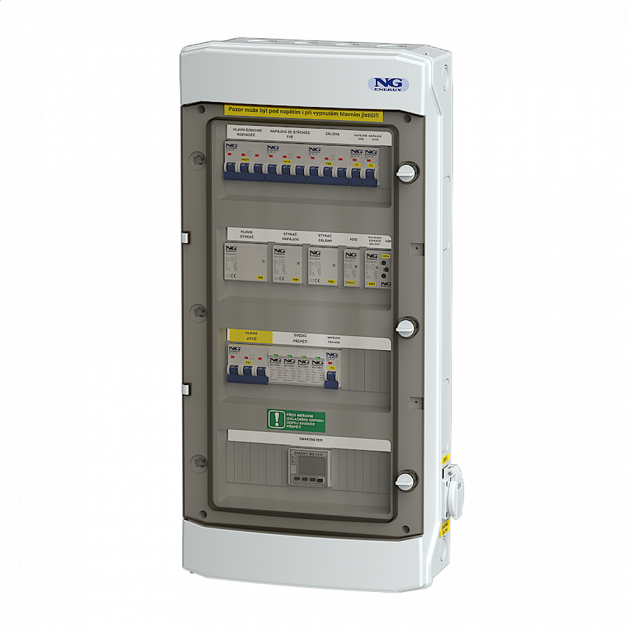 Smartmeter ani měřicí transformátory nejsou standardně osazeny. V případě dodání měřicí soustavy investorem je možné jejich odborné osazení do rozváděče.