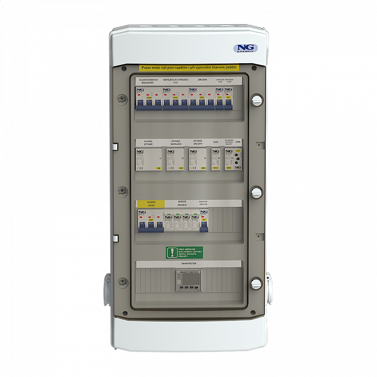 - přívod 40A/vývod 40A HDR, ON-GRID 25A, BACKUP 25A
