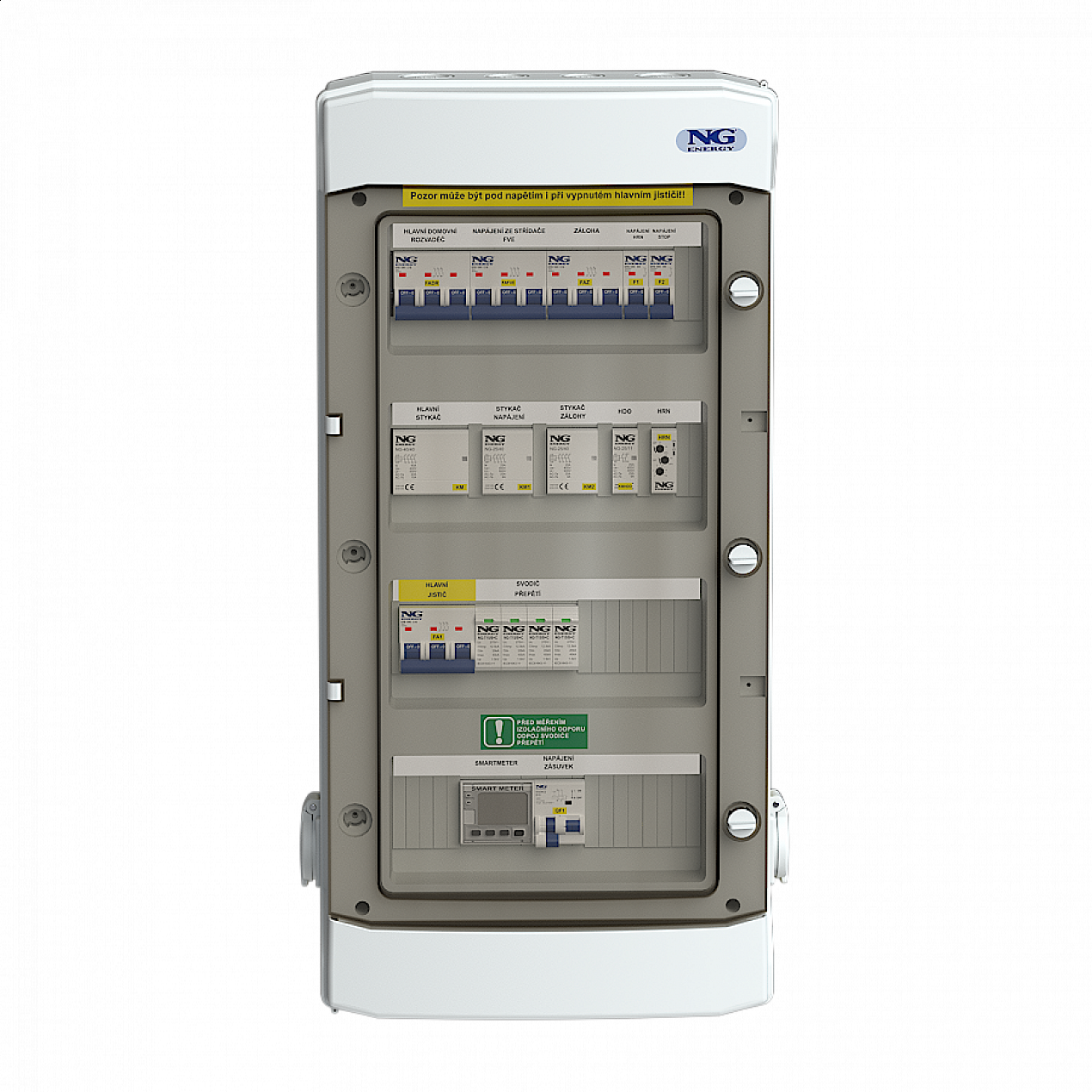 - přívod 40A/vývod 32A HDR, ON-GRID 20A, BACKUP 20A