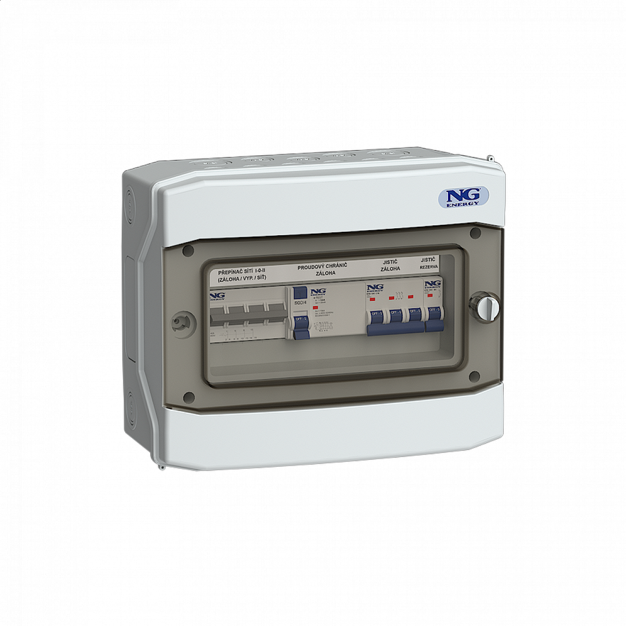 Tento rozváděč představuje pokročilé řešení pro správu zálohovaných okruhů ve fotovoltaických systémech. Integrovaný manuální přepínač umožňuje provozní flexibilitu a zajišťuje napájení kritických spotřebičů i v případě servisu nebo poruchy střídače..